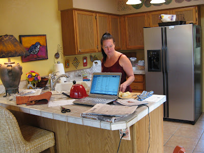 When I asked my mom about the plans for the holiday meal, she replied that Thanksgiving is a slam dunk, she and Hope had it handled. So, while I did make my cranberry/pear chutney on Thanksgiving Day, it was an afterthought. Here’s me, in my desultory cooking, laptop at the ready. And no, my mother’s kitchen is never that cluttered. That’s my fault, too. Thus I am thankful: