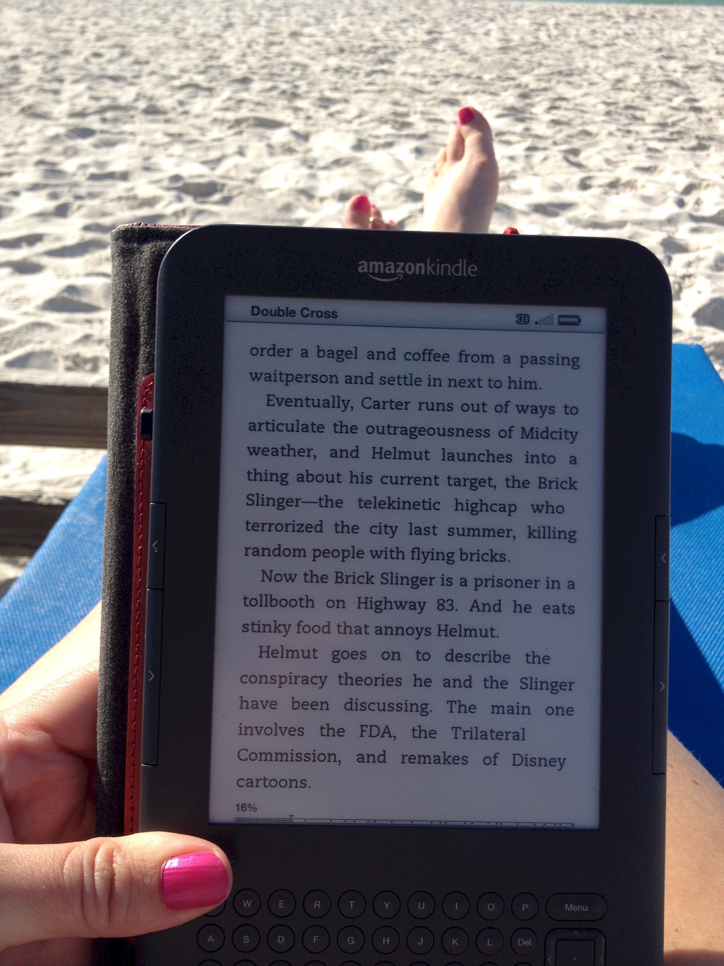 On Friday morning, I grabbed a little beach time with Carolyn Crane’s second book in her Disillusionists trilogy, Double Cross. Man, did I gobble up these books. Such a fascinating approach to the use of psychic energy. Her cast of characters is like a deeply twisted Justice League. I’m working on getting her to write more! This is one of my favorite parts of being an author – I can stalk other authors without them being so suspicious and then badger them into giving me more of what I want. Guerilla author – that’s me.