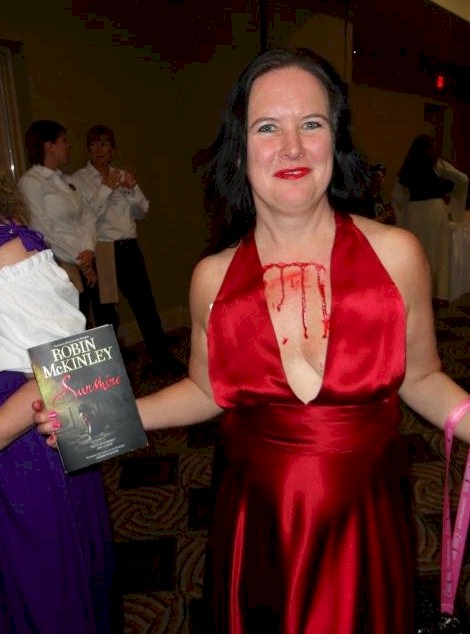 That evening was the costume party – come as your favorite literary character. That’s the picture at the top. Me as Robin McKinley’s Sunshine. I carried the book with me as a clue, but nobody got it. Mainly because very few people there had read the book. Seriously people, this is such a good book! How can I make more people read it???