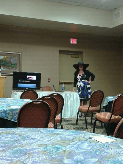 Sunday morning – well, if you’ve been reading you know Saturday night and Sunday morning were bad for me. But I did my workshop on the Erotic Story Arc. (Thank you Keri Ford for the pic!)