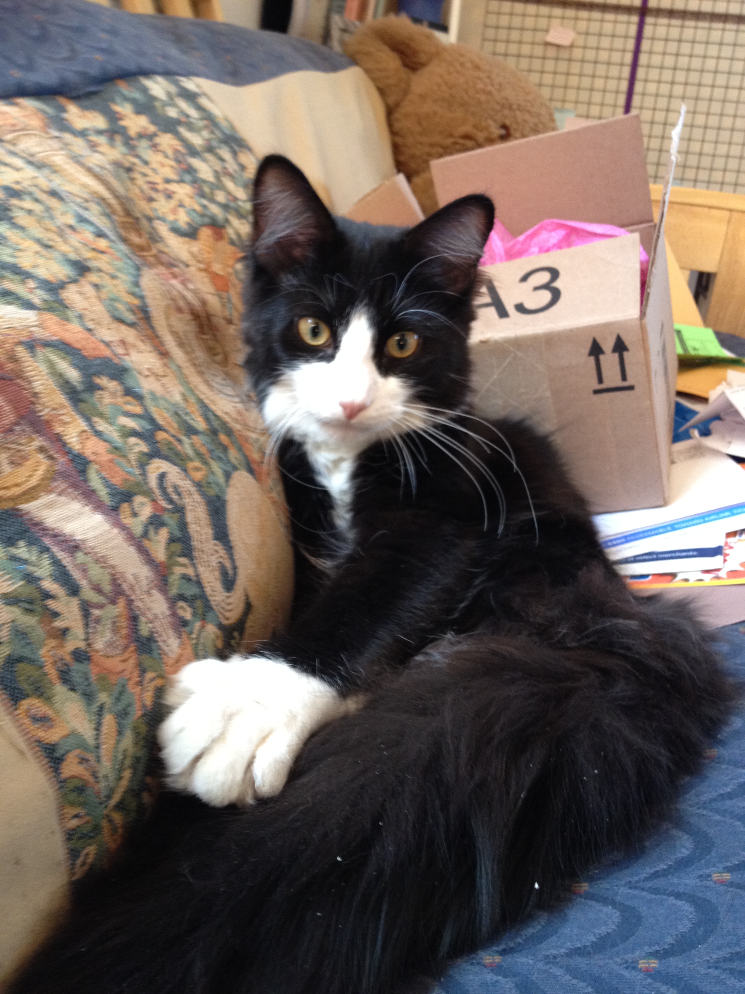 Now that the weather is turning cool, I’m getting more frequent cuddly desk companions again. I’m sure it’s me they love, not my warm lamp.