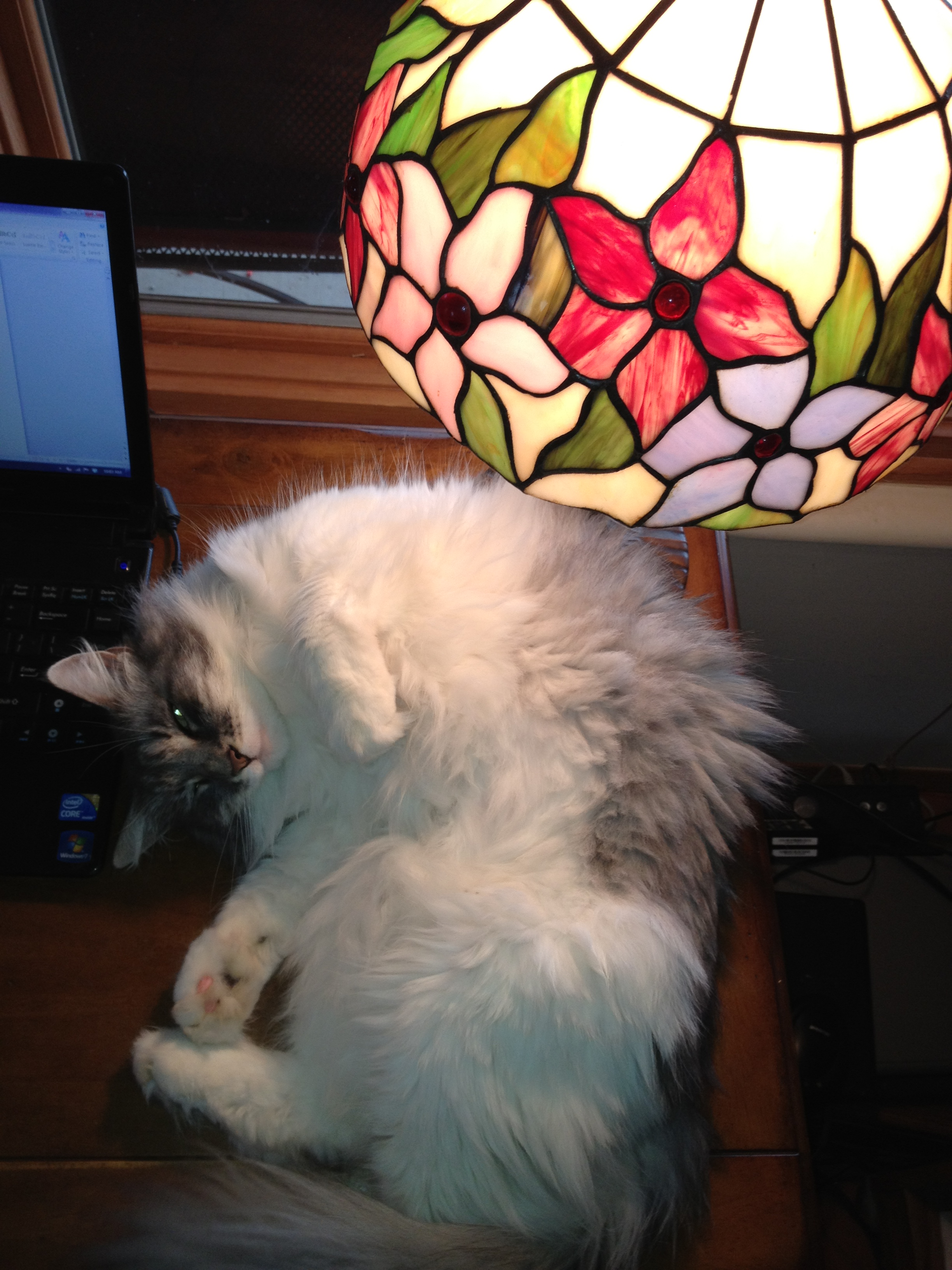 Now that the weather is turning cool, I’m getting more frequent cuddly desk companions again. I’m sure it’s me they love, not my warm lamp.