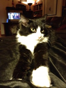 Our first snow fell on Sunday – also Jackson’s first-ever snow. He lasted about two minutes before dashing back inside to furiously clean between his toes.