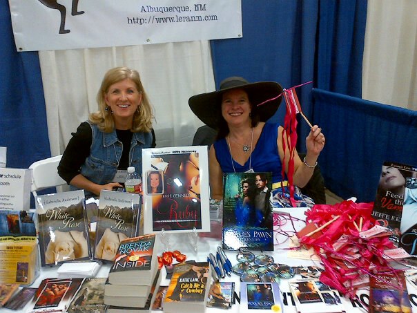 This is from the Southwest Book Fiesta over the weekend. The fun and frisky Katie Lane, who writes hometown contemporary cowboy, helped me work the booth. We had a grand time.
