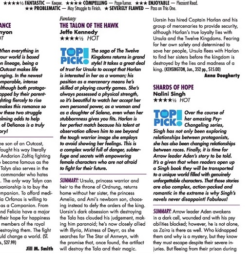 I’m just thrilled and nearly breathless to report that RT Book Reviews gave The Talon of the Hawk a 4.5 Star Top Pick review! The reviewers there are just so incredibly good to this series.