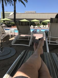 I’m just back from #WorldCon76, which was a whirlwind of great stuff. I caught a moment of downtime at the lovely Fairmont pool, including a much-needed nap.