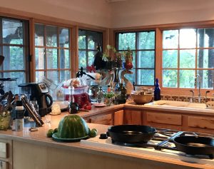 Minerva Spencer’s kitchen in Taos – isn’t it gorgeous? I’m up here visiting for the weekend and she wants me to tell you it’s normally much tidier than this but we’ve been having an eating, drinking, talking writer’s bacchanalia.