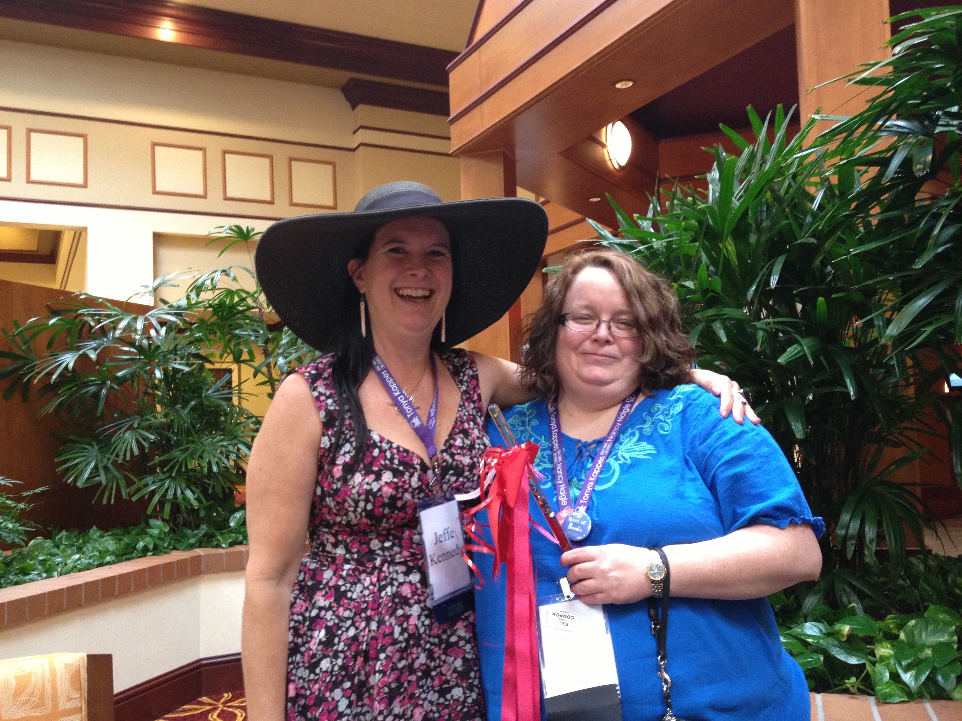 Me at the Lori Foster Reader and Author Get Together with Stephanie Collins of Book-A-Holic Anon. She won my Ruby basket in the raffle, so this is the triumphant celebration.