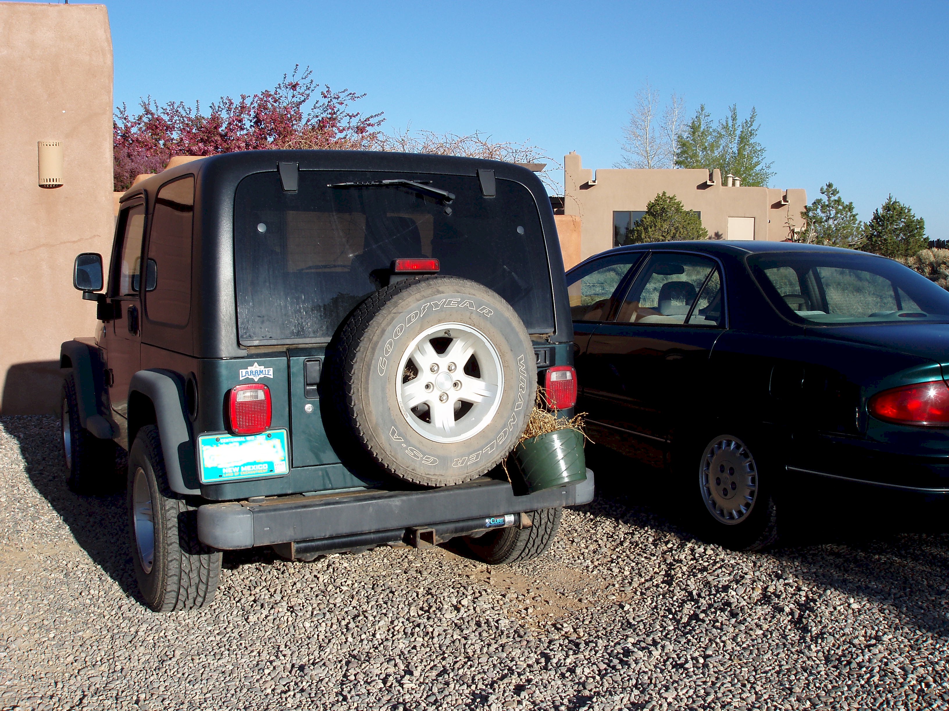 I hung the basket on the tire and added an exotic cover for shade and protection.