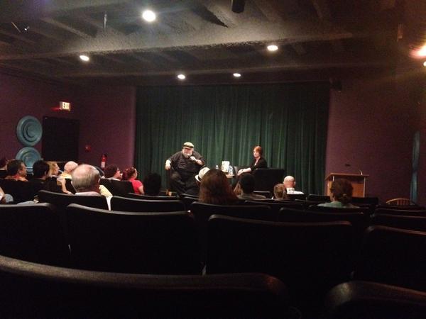 A week ago I got to go to George RR Martin’s theater here in Santa Fe, the Jean Cocteau Cinema. He’s doing really interesting things with it, having bought the old theater near the rail yard, rehabbing it and now, along with art house movies and screenings of Game of Thrones episodes, bringing in authors for signings and discussions. This was my first time to go, when Kim Harrison visited and George did a Q&A session.