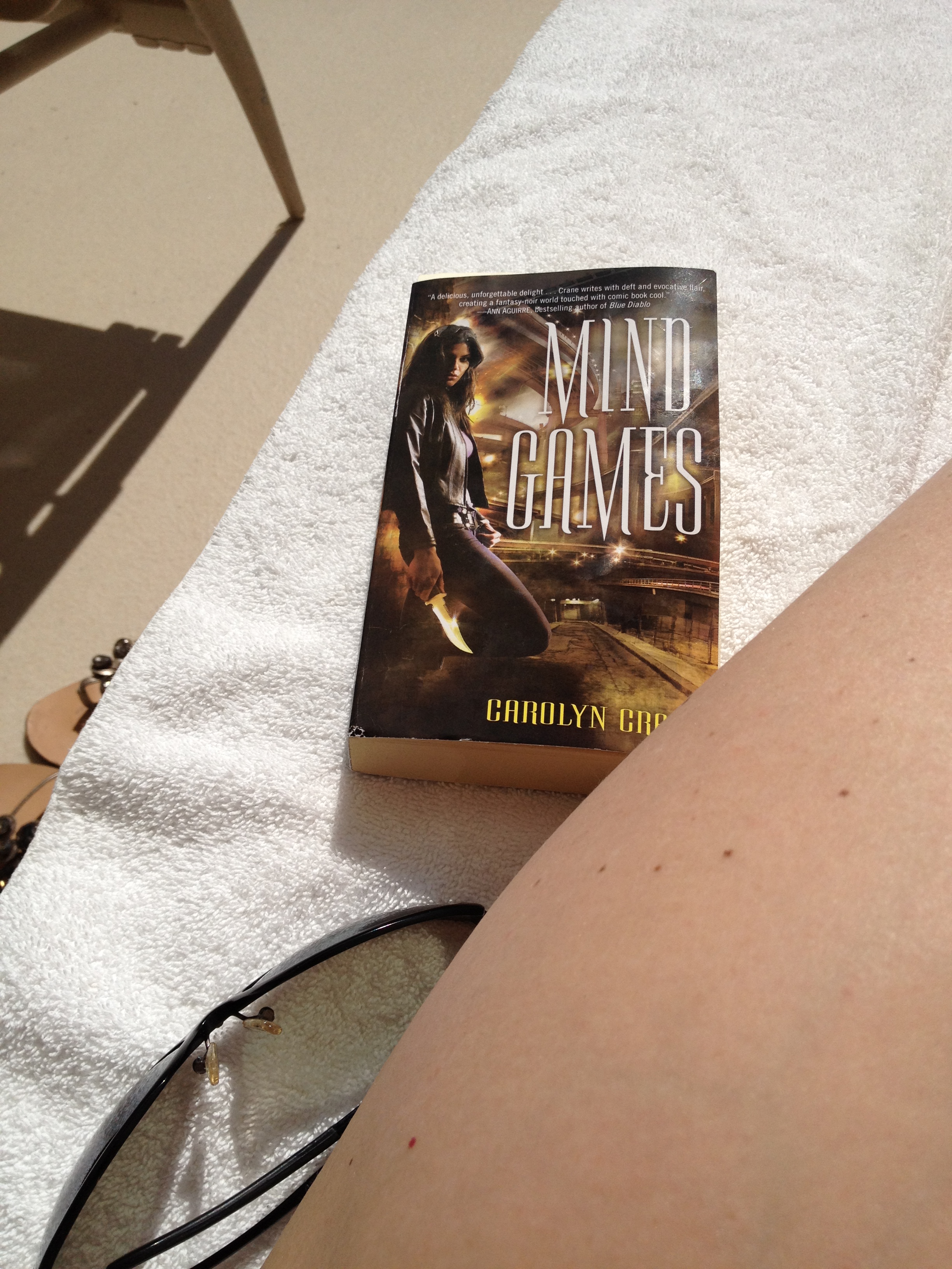 A shot from poolside in Las Vegas last weekend. I finally finished my RITA duties (eight novels in eight weeks – oy) and got to read this book. Wow, did I enjoy it. Fascinating new world. Like Anne McCaffrey’s psychics, only grittier.