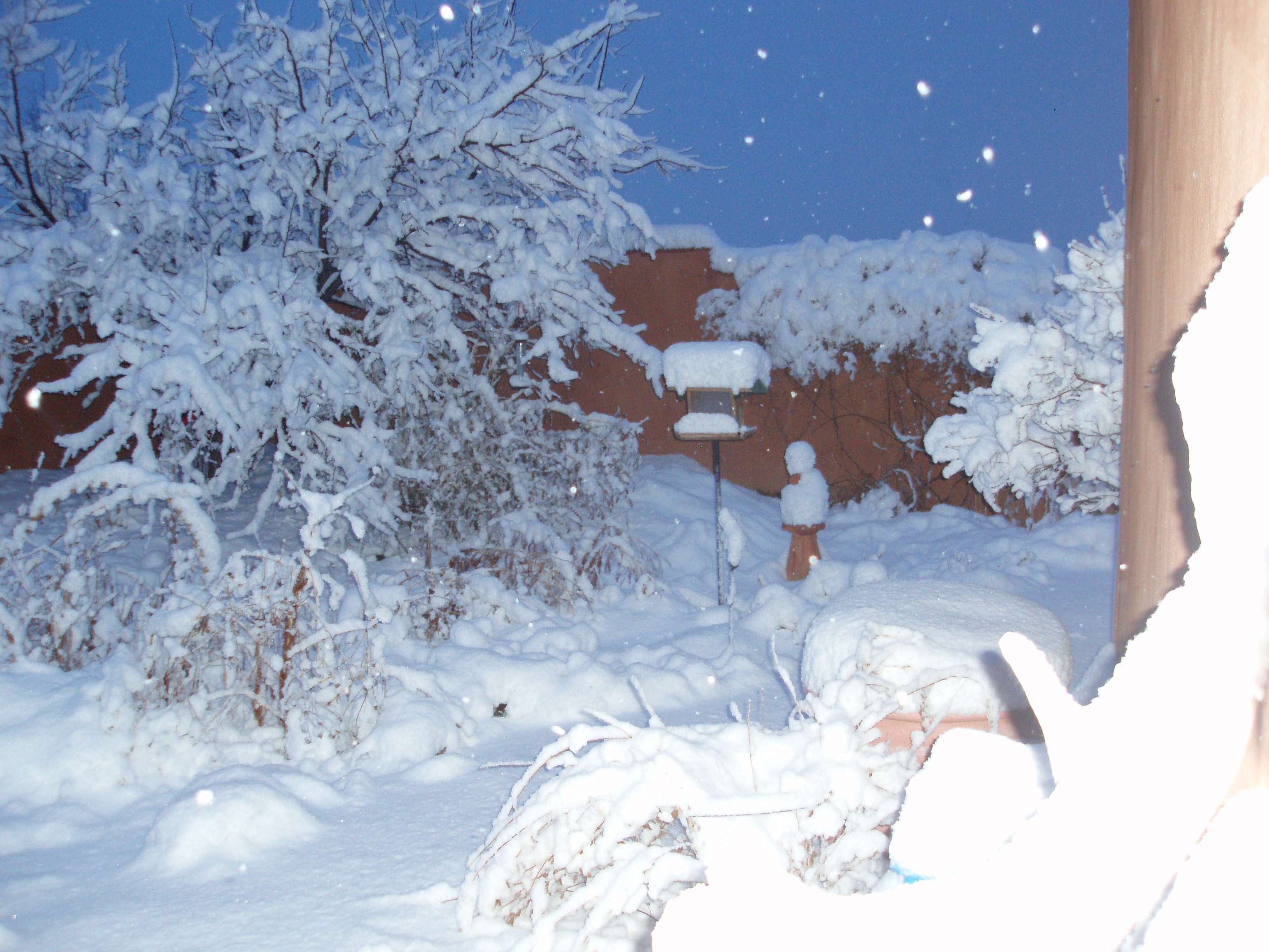Because on southwest you can cancel like 10 minutes up to 10 minutes before the flight so I did a backup flight on southwest that would have left l a at like 9 connected through phoenix and into Albuquerque. And gotten into Albuquerque at like 3 in the afternoon and David would have had to drive down to Albuquerque to get me so I waited until I was like on the playing in l a and it looked like everything was good to go and then canceled my southwest flight I kind of. Wanted to wait till I got there but I I would have missed my um 10 minute window so I canceled the southwest flight from my plane and got to Denver and Denver was very snowy. And everything was looking good I had a fairly short layover. Got um you know was there at my gate and everything and then they said they had a maintenance problem low oil and they needed to check into it I was like ah so I went ahead and did it again and made a backup flight. Reservation on southwest leaving it wasn’t it would have left a lot later in the day I think it didn’t lead to like 5 it was my only only other option again going down to Albuquerque but it would have been better than if you know because united didn’t have any other flights to Santa Fe that day. That was like okay well I really don’t want to spend another whole day in night in Denver so I made the backup flight again and we ended up going. We got on up on the play we were like half an hour late forty minute hour late forty minutes late and david picked me up in santa fe and once I landed in santa fe then I went to my southwest app I mean it’s really nice to have these phone apps and be able to do this I went to my southwest app and canceled that flight and amusingly enough when I went to that flight did this like big red flag warning on it saying warning your flight due to you know. Conditions weather conditions beyond our control beyond our control. Your flight may be canceled or delayed and you could rebook and by the time it was pretty nice when I landed the wind was sharp but by the time we got home. Um, the wind was really picking up and by. Like five o’clock it was storming away here. So I was glad that um I like feel like I sort of wove between the windows there finding my windows of opportunity.