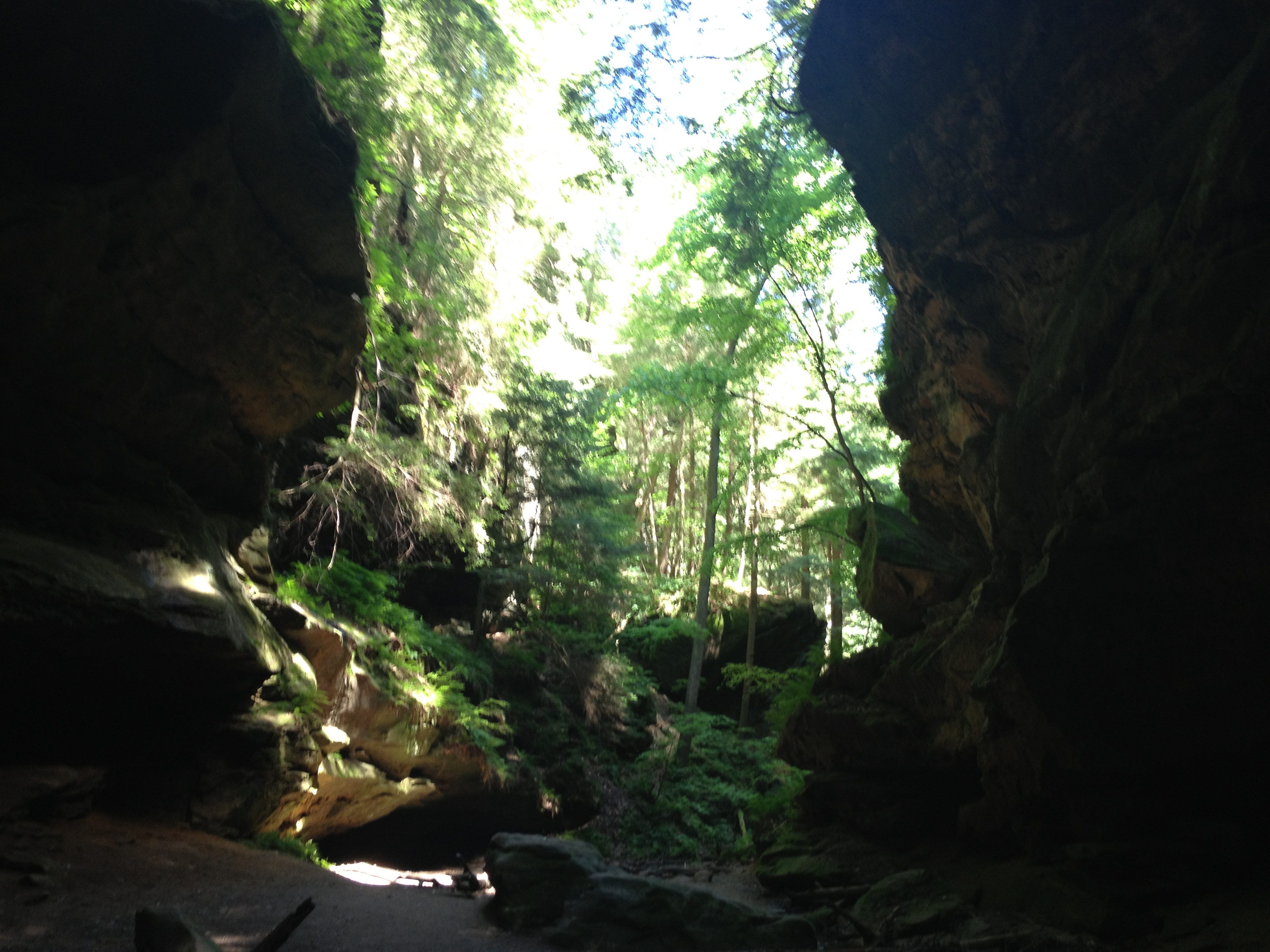 I spent the last few days on “writers retreat” with my critique partners Laura Bickle and Marcella Burnard. Laura treated us to a cabin in the Hocking Hills and took us on her favorite hikes to these amazing nooks and grottoes. It was so lovely. There’s something about all that pure water springing through rock crevices that’s magical, too. It felt purifying and inspiring.