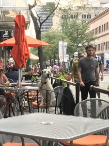 I loved how this dog got their own chair at the bar along Denver’s busy 16th Street pedestrian mall. Spotted while having drinks with the lovely and witty Limecello.