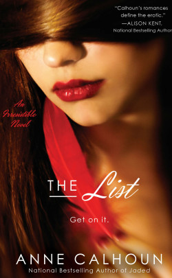 SO excited to read Anne Calhoun’s latest – THE LIST – out today! Anne is easily one of my favorite living writers of erotic romance. Yes, she’s also my friend, but I feel I can say this in all honesty because I first read her books, THEN stalked her and made her be my friend. She’s a brilliant writer, weaving deep emotions from traumatized people with hot, riveting erotic encounters. Publisher’s Weekly said it best: