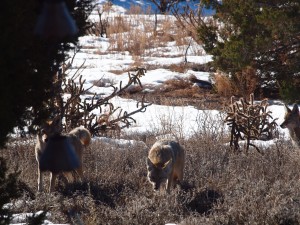 We had some coyote visitors the other day. I took this through our glass front door. They look happy and healthy!