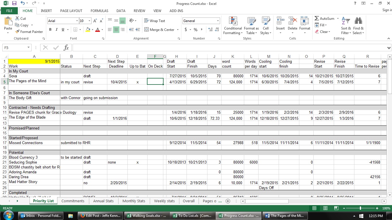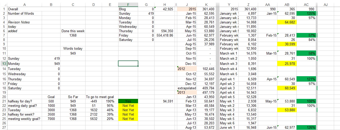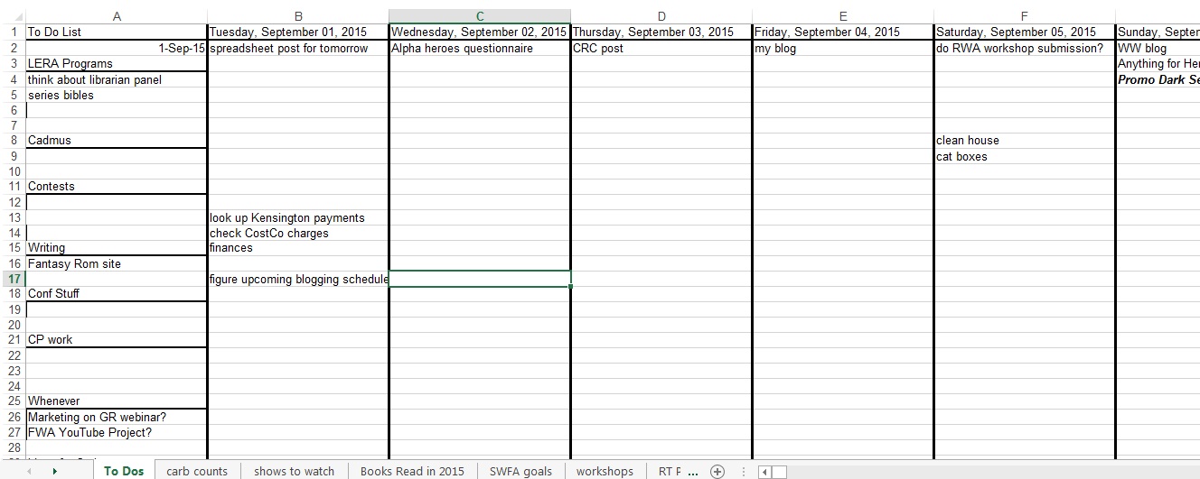 Why both of these somewhat disparate things? I have no idea. My TBR isn’t physical (mostly). I keep my inventory of unread books on a – you guessed it! – spreadsheet. There are currently 323 books on it.
