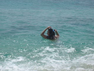 I spent a lot of time in the sun water yesterday. Here’s me, emerging like something less than Aphrodite from the waves, snorkel mask tangled in my hair.